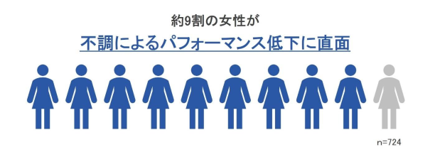 約9割の女性が「普段よりもパフォーマンスが低下する」と回答しました。
