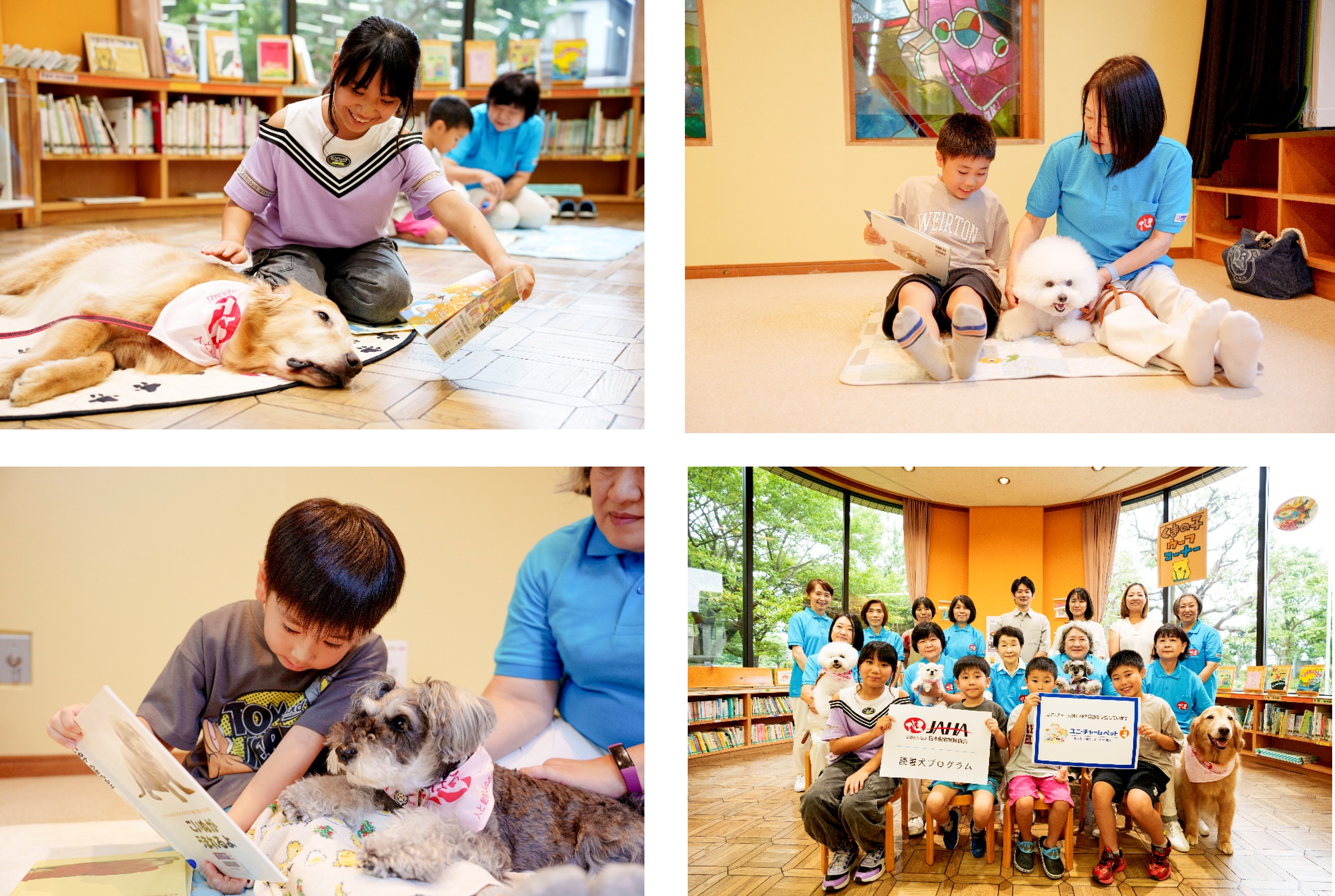 そこでこのたび、JAHAが展開する子どもたちが犬と触れ合いながら読書に親しむ「読書犬活動」が、当社のペットケア事業と高い親和性を持つと判断し、支援することといたしました。