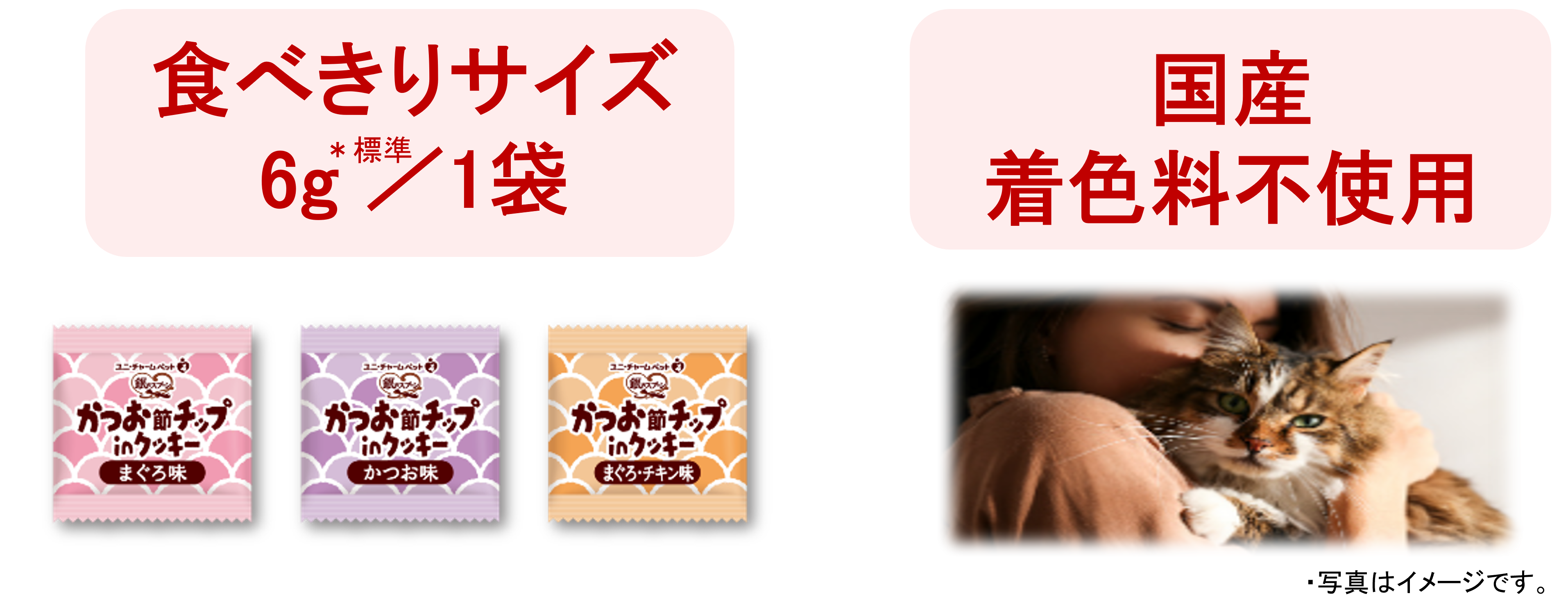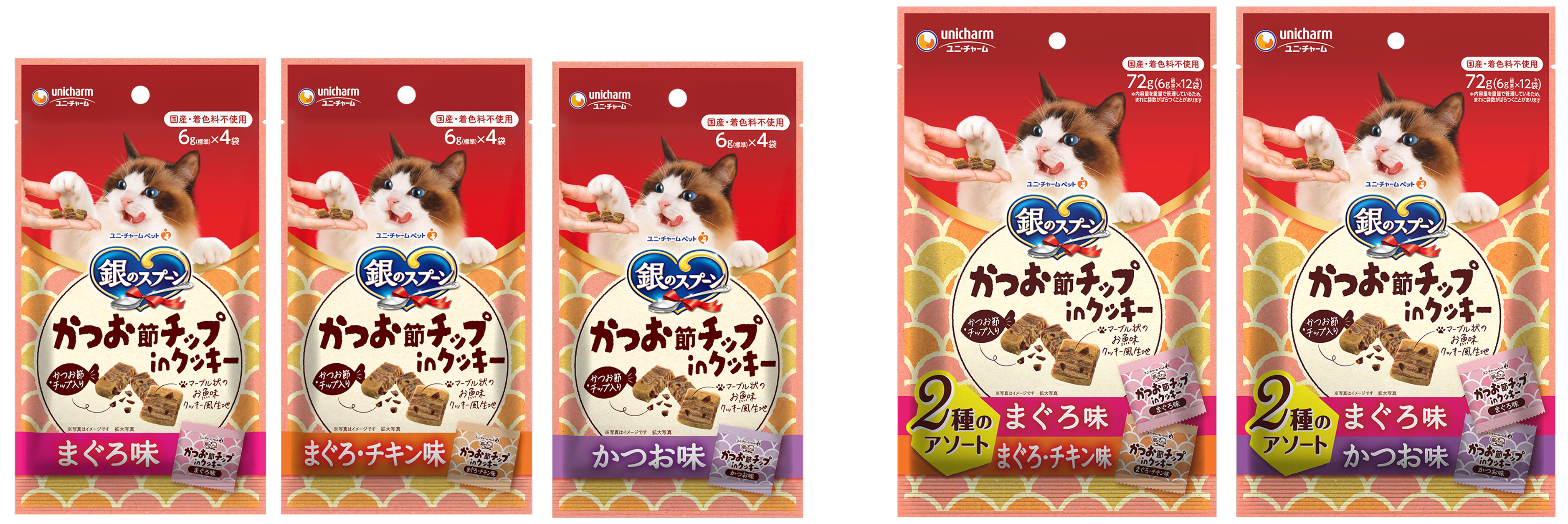 ユニ・チャーム株式会社(代表取締役 社長執行役員:高原 豪久)は、猫用おやつの『銀のスプーン』から、かつお節チップ入りで3種類のおいしさを一度に味わえる「銀のスプーン かつお節チップinクッキー」を、2025年3月4日に全国で発売します。