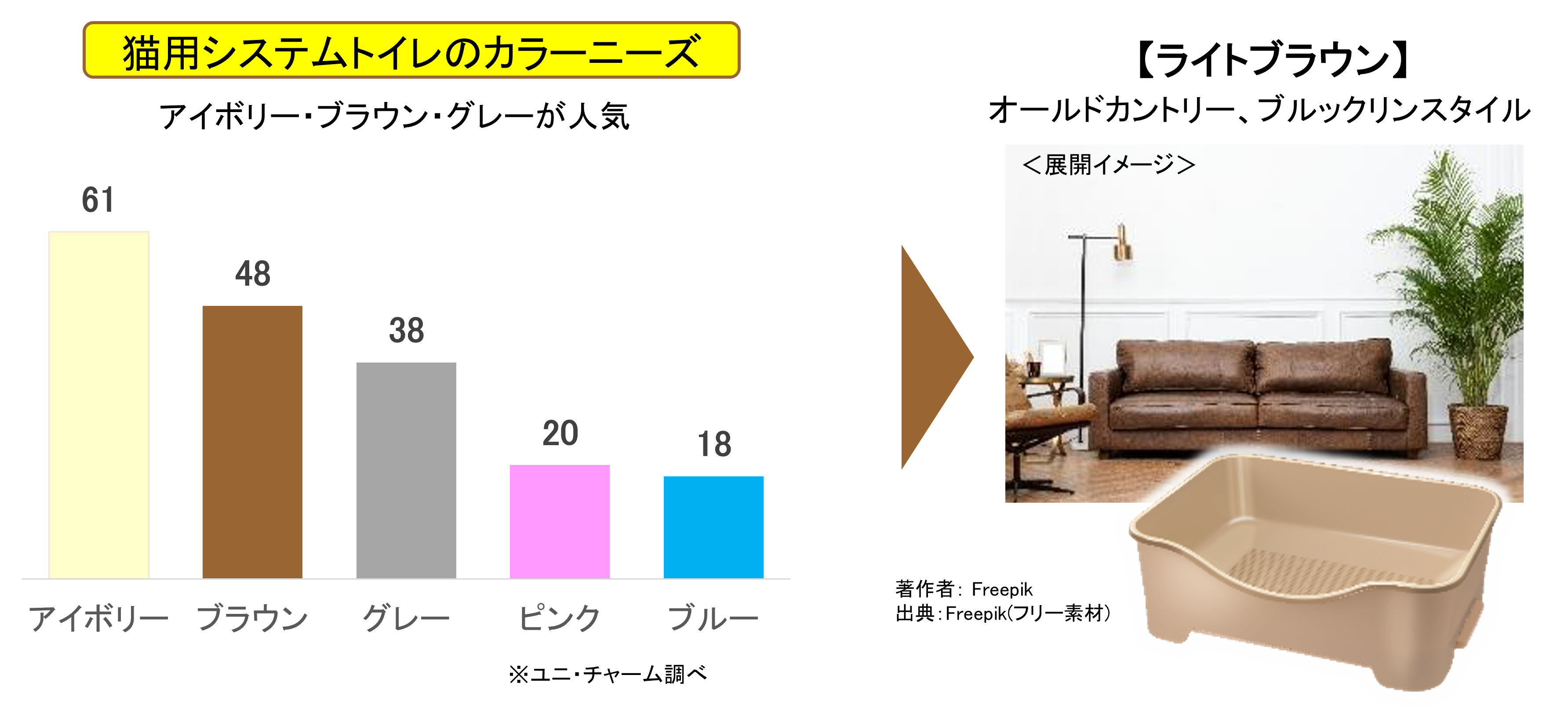 近年、猫用排泄市場では、消臭力とお手入れの簡便性が評価され、「システムトイレ」が普及しています。中でも、『デオトイレ® らくらくシンプル』は、「猫が慣れやすい設計」「ケージにも置けるコンパクトなサイズ」「手入れが簡単」といった特長が支持され、2024年3月発売以降、多くの飼い主様にご愛用いただいています。一方、システムトイレのリビングへの設置率が約1.3倍※(2019年比)に拡大していることから、、インテリアに調和するデザインを求める飼い主様も約1.2倍※(2019年比)に増加しています。