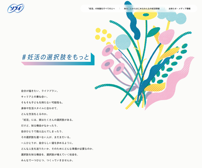 そこで『ソフィ』は、性別やライフスタイルを問わず誰もが「妊活」について正しく学べる環境づくりを目指し「妊活の選択肢を、もっと。」プロジェクトを開始します。