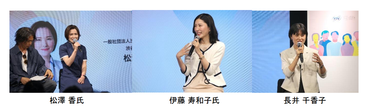 第2部のトークセッションでは、登壇者が自身の体験や考えを率直に語りました。渋谷区副区長の松澤氏は、自身が弁護士としてキャリアを築く中での出産経験を共有し、「誰もが安心してキャリアと育児を両立できる環境整備が必要」と述べました。また、戦略コンサルタントの伊藤氏は、「パートナーに妊娠・出産の話題をどう話すかが難しく、結婚前に話題にすると重いと思われないかという葛藤があった」と実体験を語り、普段なかなか人には聞きにくい話題について、参加者の共感を集めました。