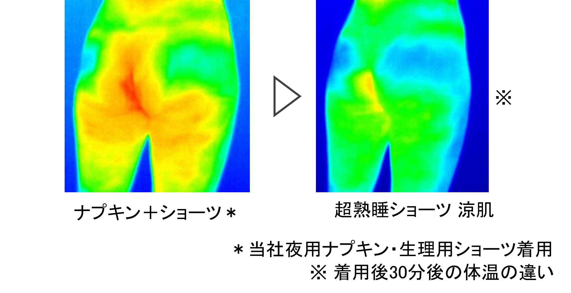 ・『ソフィ 超熟睡®ショーツ涼肌』および『ソフィ 超熟睡®ガード涼肌』の使用時、肌の表面温度が低下する※2ことが確認されています。