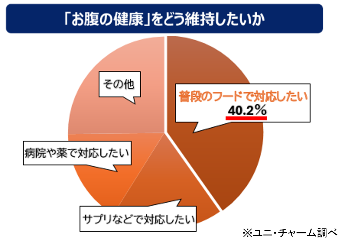 近年、ペットを家族の一員として大切にする飼い主様が増えており、それに伴いペットの健康に対する意識も一層高まっています。中でも「お腹の健康」は気になる項目として多く挙げられており、当社調査では、日々のフードを通じてお腹の健康を維持したいと考える飼い主様が約4割※2にのぼることがわかりました。
