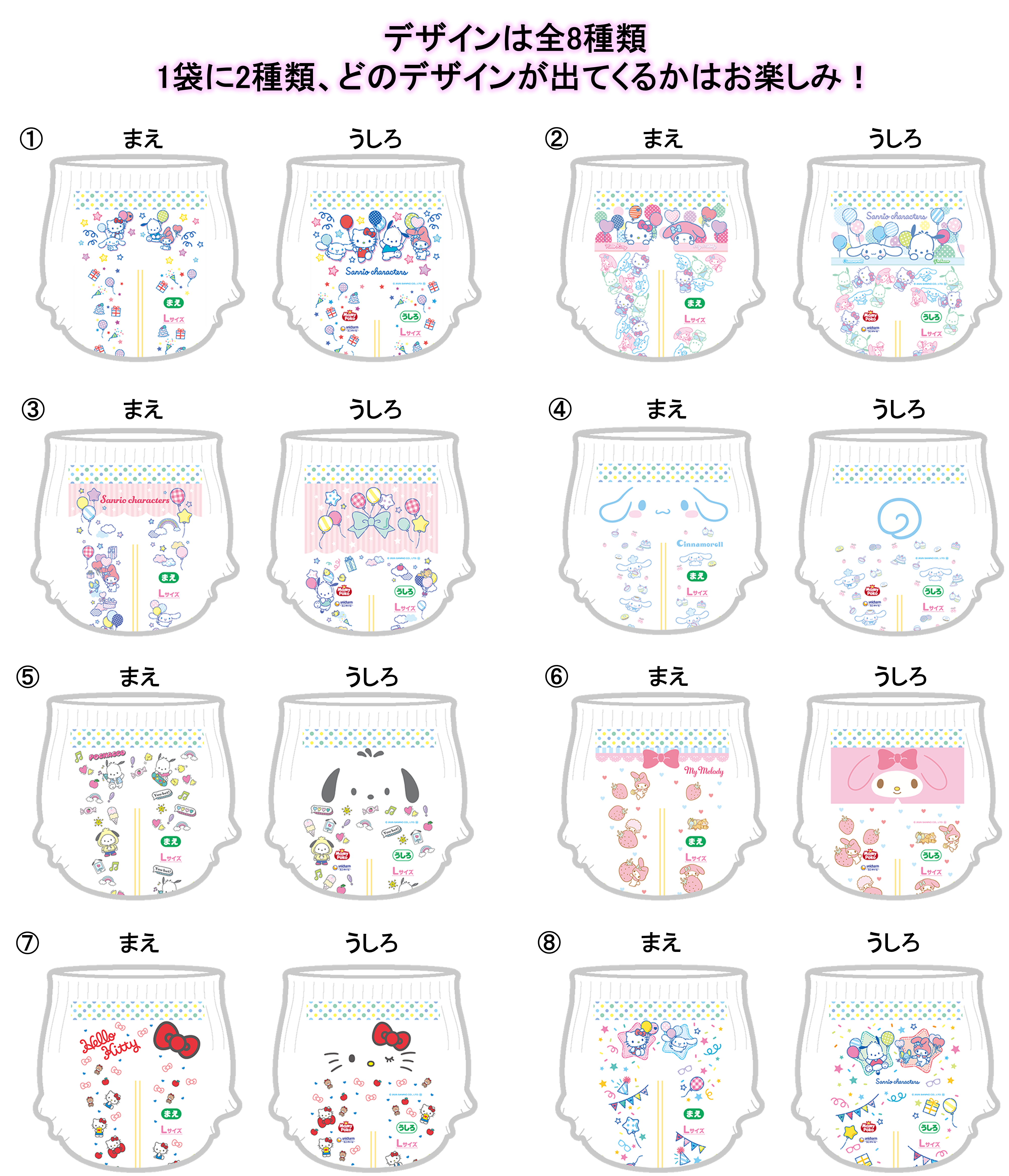 そこでこのたび、お子さまが喜ぶサンリオの人気キャラクターをデザインに採用し、親子で楽しくおむつ替えができる『マミーポコパンツ』サンリオキャラクターズデザイン企画品を、期間限定で発売します。