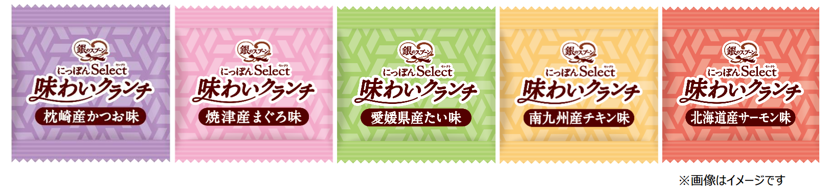 そこでこのたび、日本各地の厳選素材を使用したドライタイプおやつ、『銀のスプーン にっぽんSelect 味わいクランチ』を発売します。