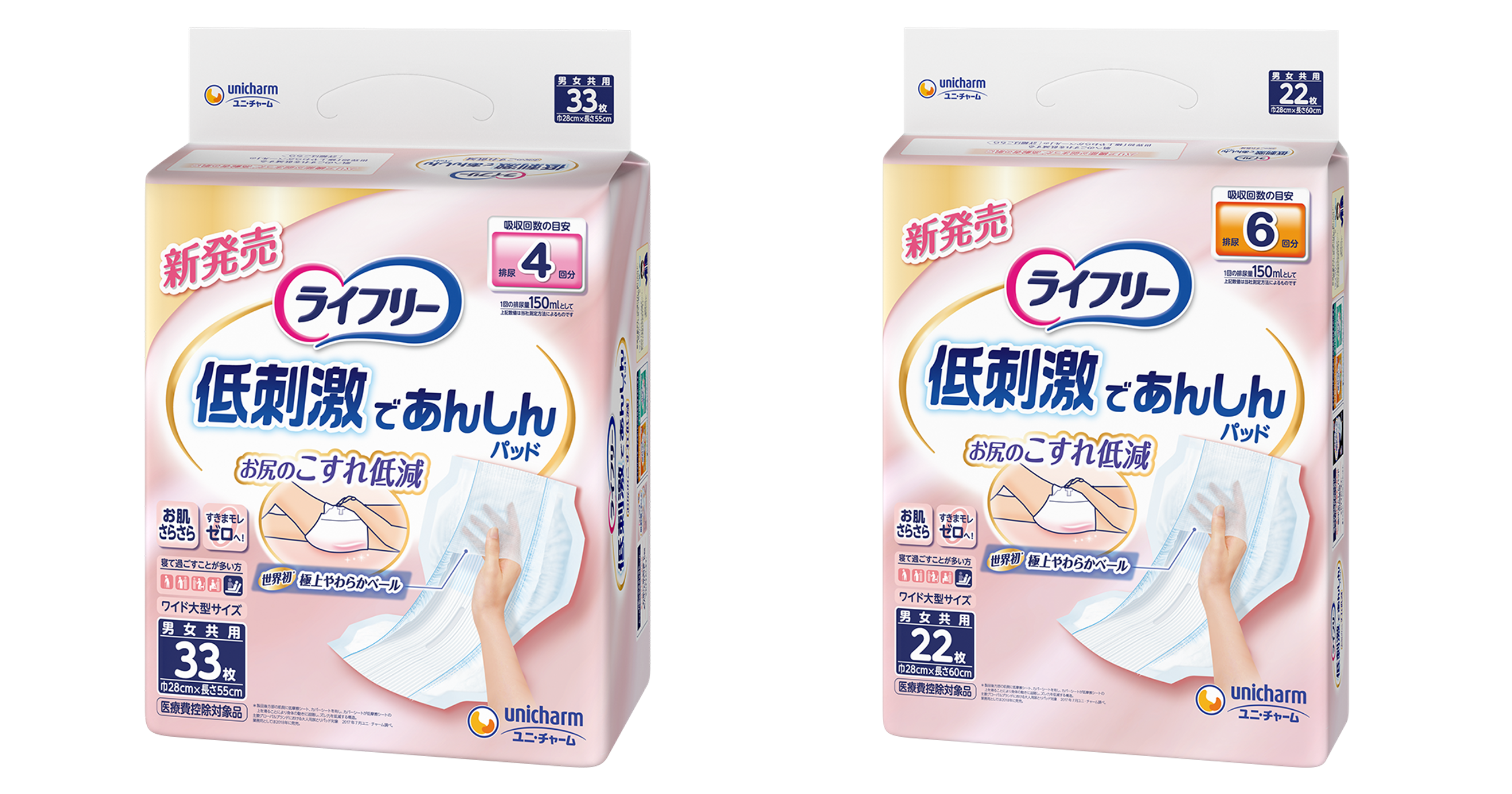 そこでこのたび、大人用排泄ケアブランド売上No.1※2の『ライフリー』から、肌トラブルへの不安を軽減する世界初※1の技術を搭載した『ライフリー お肌に低刺激であんしん尿とりパッド』を発売します。