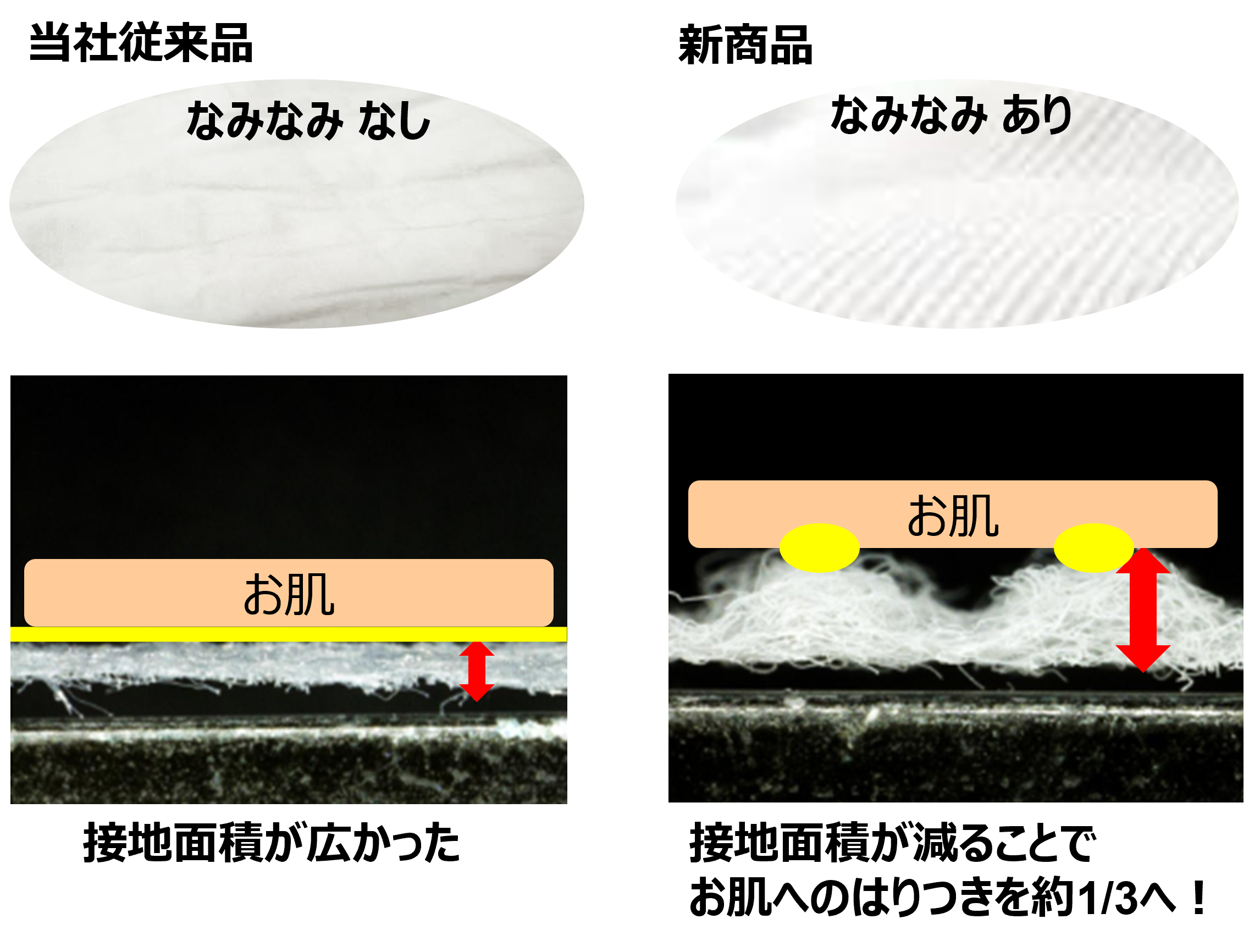 (3) なみなみ素材のシートを採用、お肌へのはりつきを約3分の1に低減※5