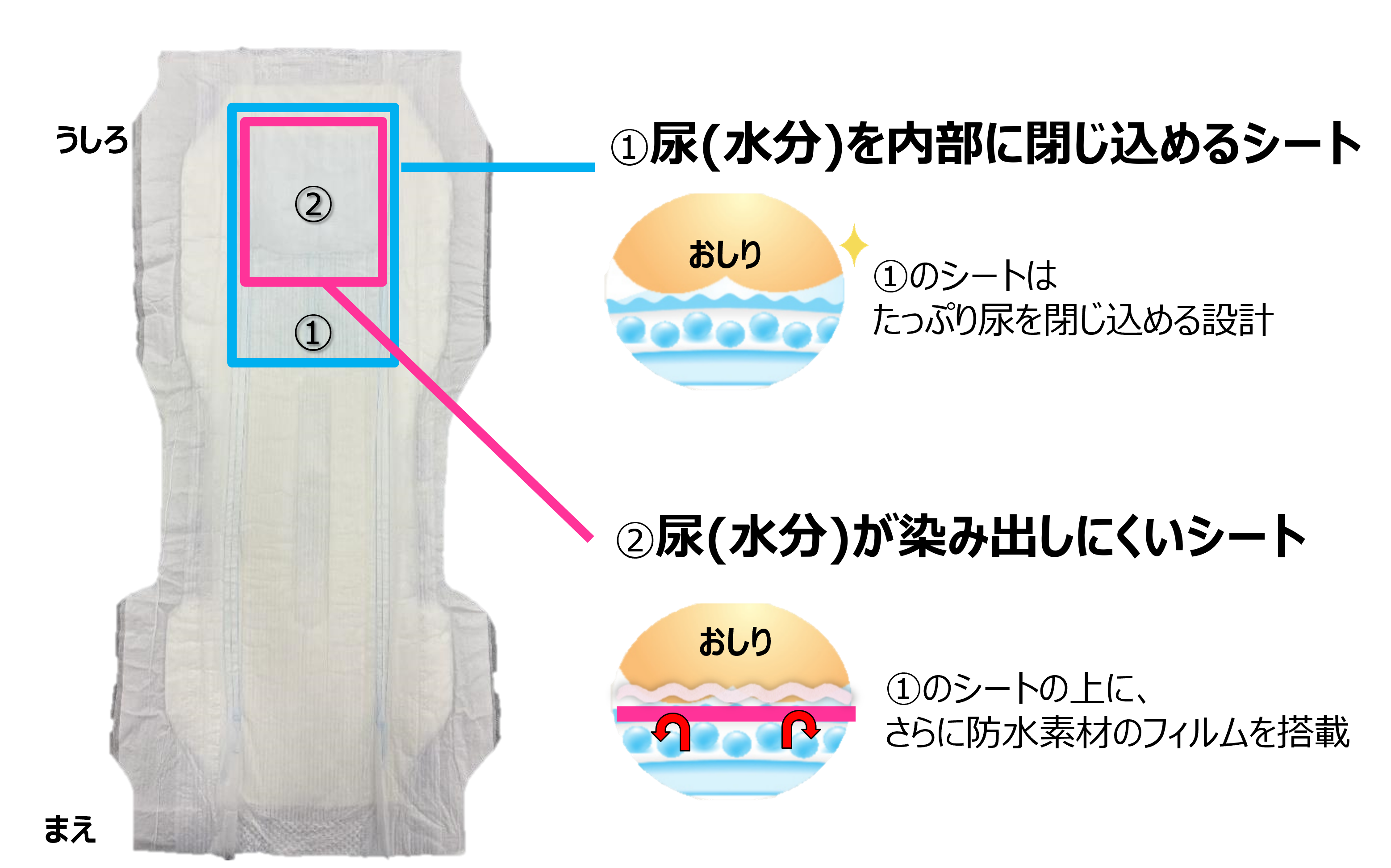 (2) 「Wドライ構造」を採用し、尿の逆戻りを99%低減※4