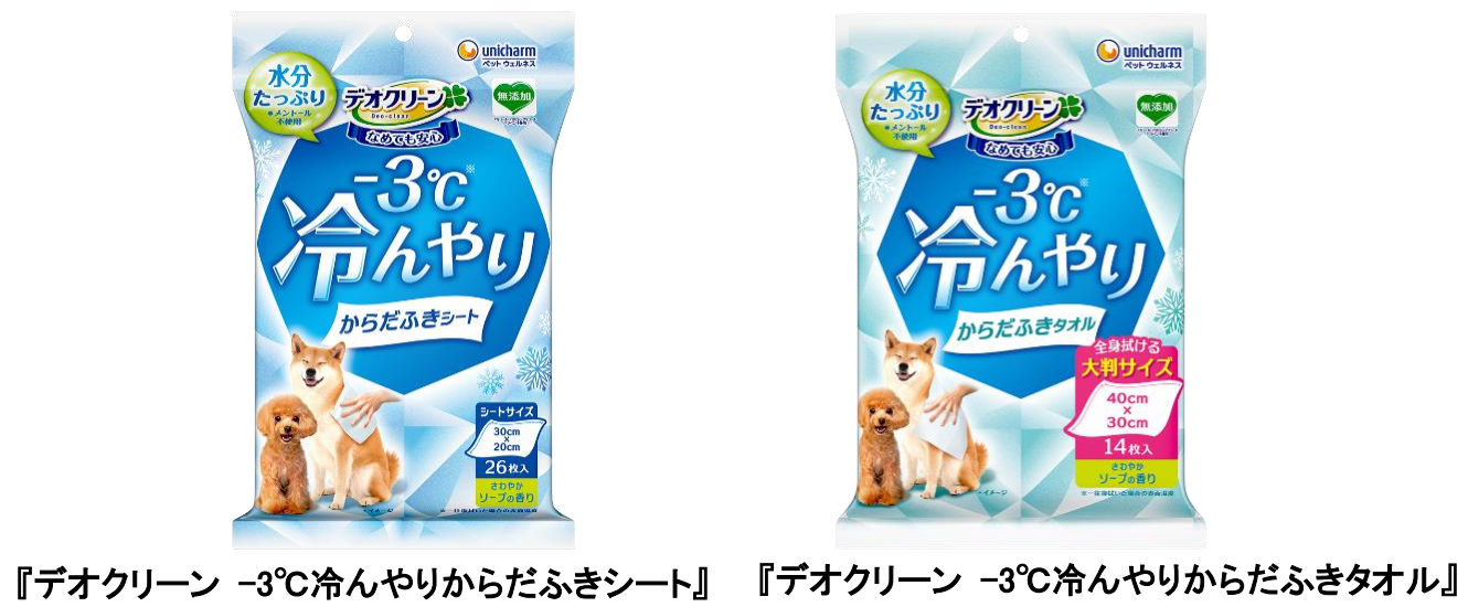 ユニ・チャーム株式会社(代表取締役 社長執行役員:高原 豪久)は、ペットと飼い主様の清潔で快適な暮らしをサポートする『デオクリーン』ブランドから、手軽に夏の暑さ対策ができる、拭いた瞬間から熱を逃がして表面温度を約3℃下げる※『デオクリーン -3℃冷んやりからだふき』を、2026年4月7日に全国で期間限定品として発売します。