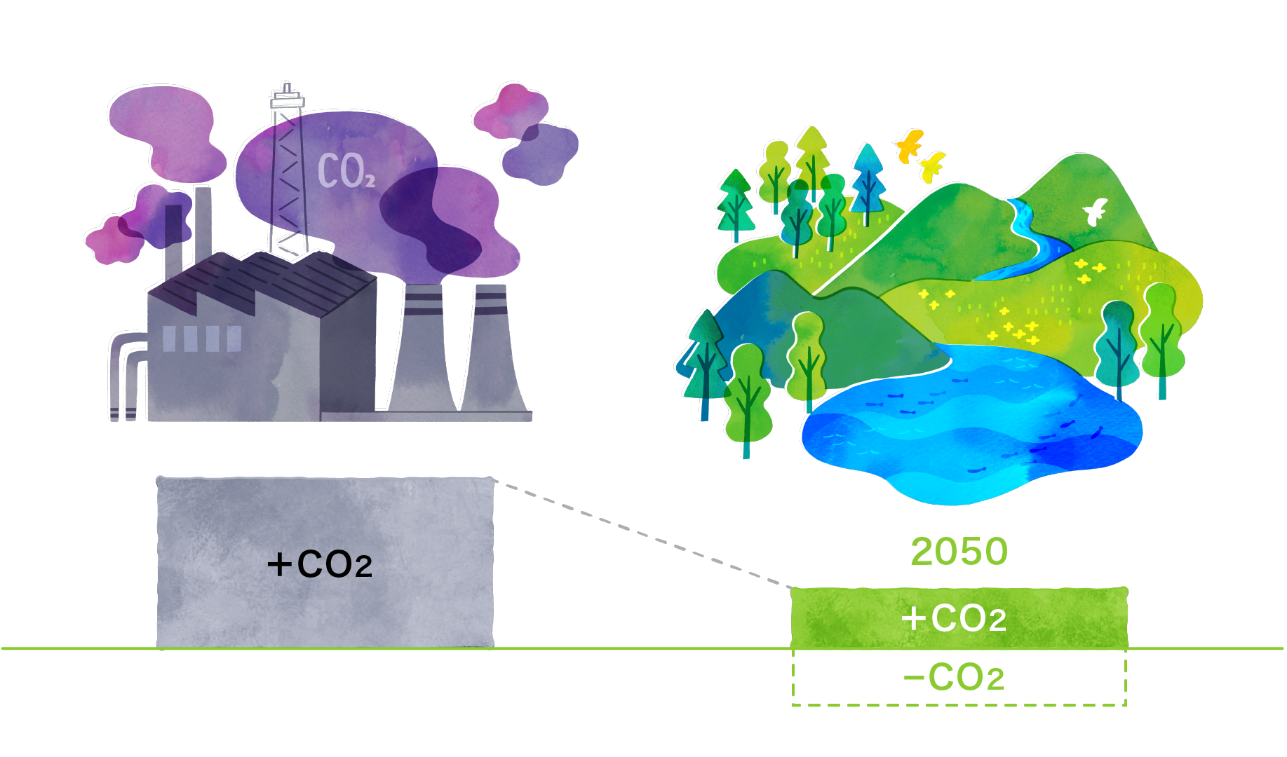 植林や森林管理などによる「吸収量」を差し引いて、合計を実質的にゼロにすることを意味しています。