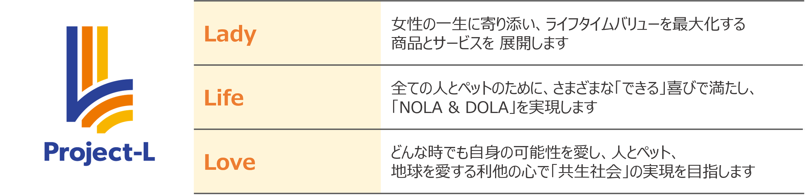 現在アジアを中心に所得水準の高まりに伴って中間層世帯が拡大し、女性の可処分所得が増加しています。この状況は女性の社会進出が進むにつれて、今後はアジアだけでなく中東、アフリカ地域にも拡大し、女性が消費トレンドを生む時代になると予測しています。このような変化を踏まえ、当社の事業との親和性が高い女性にまつわるメガトレンドを取り込み、女性躍進を象徴する世界一の企業へと成長するための土台を築くべく、 2024年度に開始した第12次中期経営計画のタイトルを「Project-L」としました。
