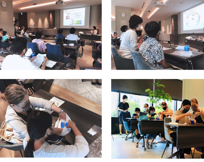 セミナーでは、紙おむつの吸収実験などを交えながら、当社が世界で初めて開発し、社会実装に向けて挑戦中である「使用済み紙おむつの水平リサイクル」の技術についてご紹介しました。