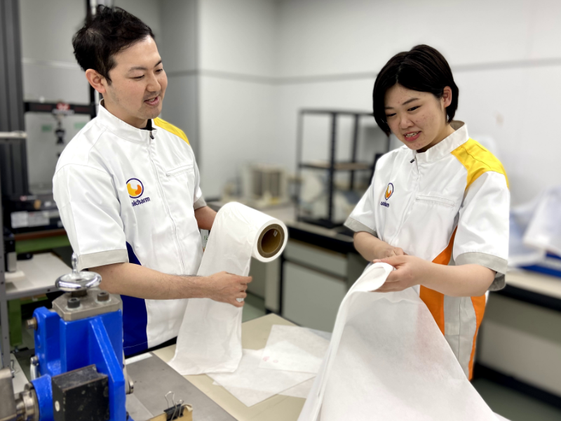 ユニ・チャームの購買部門は他社と比べユニークな役割を担っています。それは、通常の購買業務に加え「素材開発」まで担当していることです。全世界の自社製品に使用する資材を対象に、共に成長できる取引先様の決定や、取引先様との協働を通じて今までにない新たな素材の開発に取り組んでいます。購買機能と開発機能の二つの機能を購買部門が併せ持つことで他社に類をみない競争力の高い資材調達を実現しています。