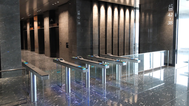 エントランスからエレベーターで27階へ。入館証を使ってゲートを通過し、2台目のエレベーターで3フロアあるオフィスへ向かいます。