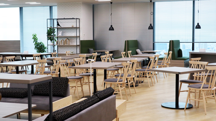 カフェスペースは昼時に多くの社員でにぎわう場所です。
