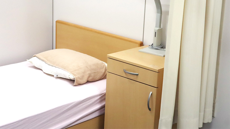 体調不良時に休養するための部屋を2か所設けています。各部屋にベッドがふたつ、カーテンで仕切ることができます。