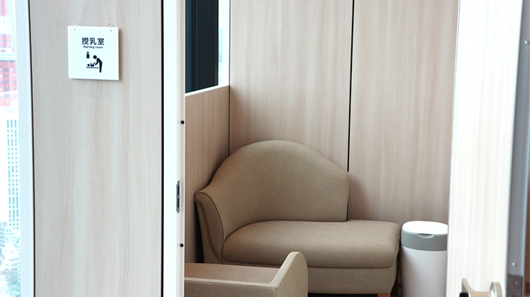 主に来訪者に向けて、気兼ねなく授乳など赤ちゃんと向き合うことができる個室を受付近くに用意しています。