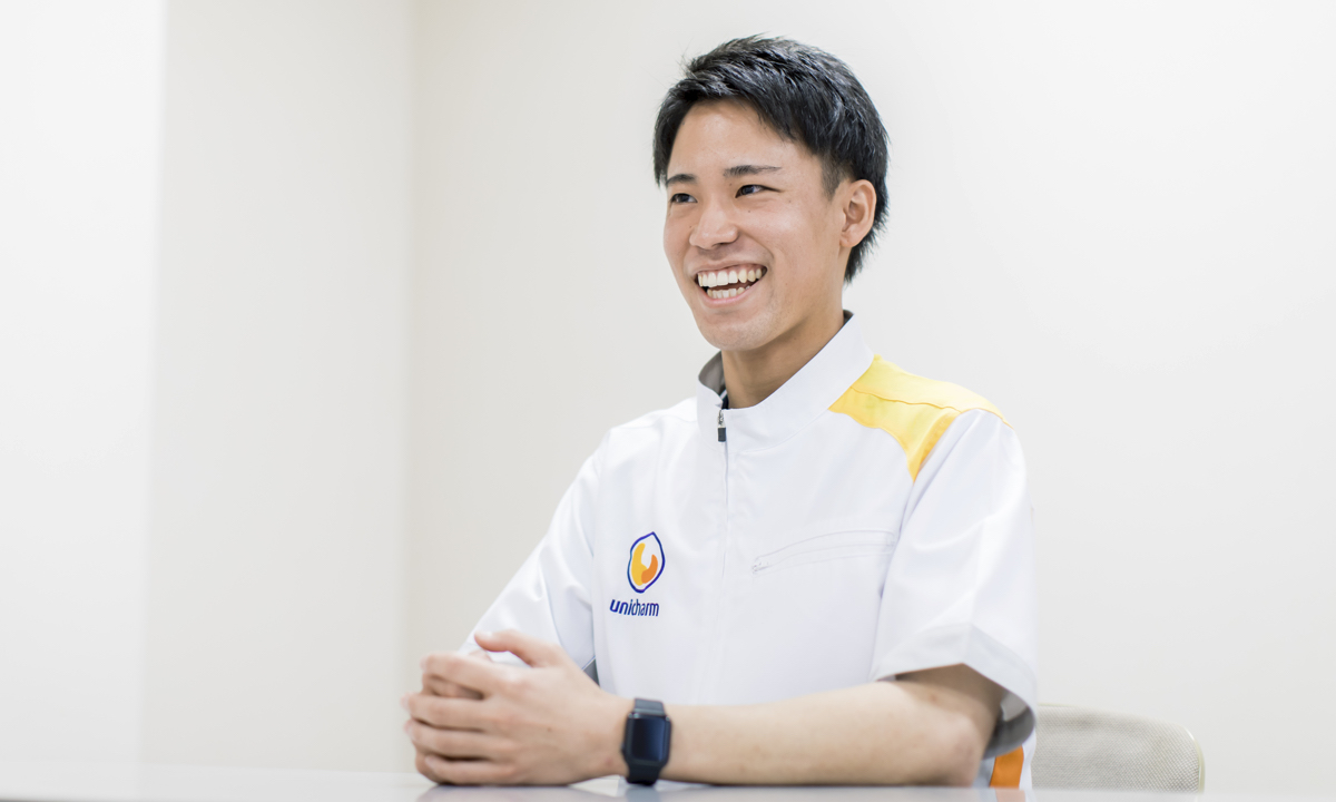 大学3年生のときに参加した、ユニ・チャームの設備開発職のインターンシップが入社を志望するきっかけになりました。そのインターンシップでは、商品を実際に見ながらグループで製造工程を考え、商品の一部分を工作するという内容でした。先輩社員の方からヒントをいただきながら、グループで話し合い、協力して作業を進めることが大変楽しく、最終完成したときに大きな達成感を感じたことを覚えています。また、出会った先輩社員の方々がみなさんとても輝いていたことも、この会社で働きたいと思った大きな理由です。そして入社後行っている業務も、インターンシップで経験した内容に近く、日々楽しさを感じながら働けています。「好きこそ物の上手なれ」という言葉の通り、楽しい、好きと感じられることを仕事にできたことで、日々、自身の成長を実感しています。