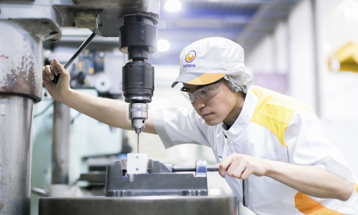 「世界初」の機能を付与した生理用品の生産設備を開発したいです。不織布を使った生理用品は、発売されてからすでに60年以上の月日が経っており、これまで多くのアイデアや機能が生み出されています。そんな中、世界初の商品を創り出すことは簡単なことではありません。しかし、ユニ・チャームには「出る杭は伸ばす」という企業風土が根付いています。だからこそ、積極的に出る杭となり、ユニ・チャームがこれまで培ってきた技術と自身の知識、経験、技術を組み合わせることで、より難易度の高い世界初の機能型生理用品の生産設備開発にチャレンジしていきたいと考えています。