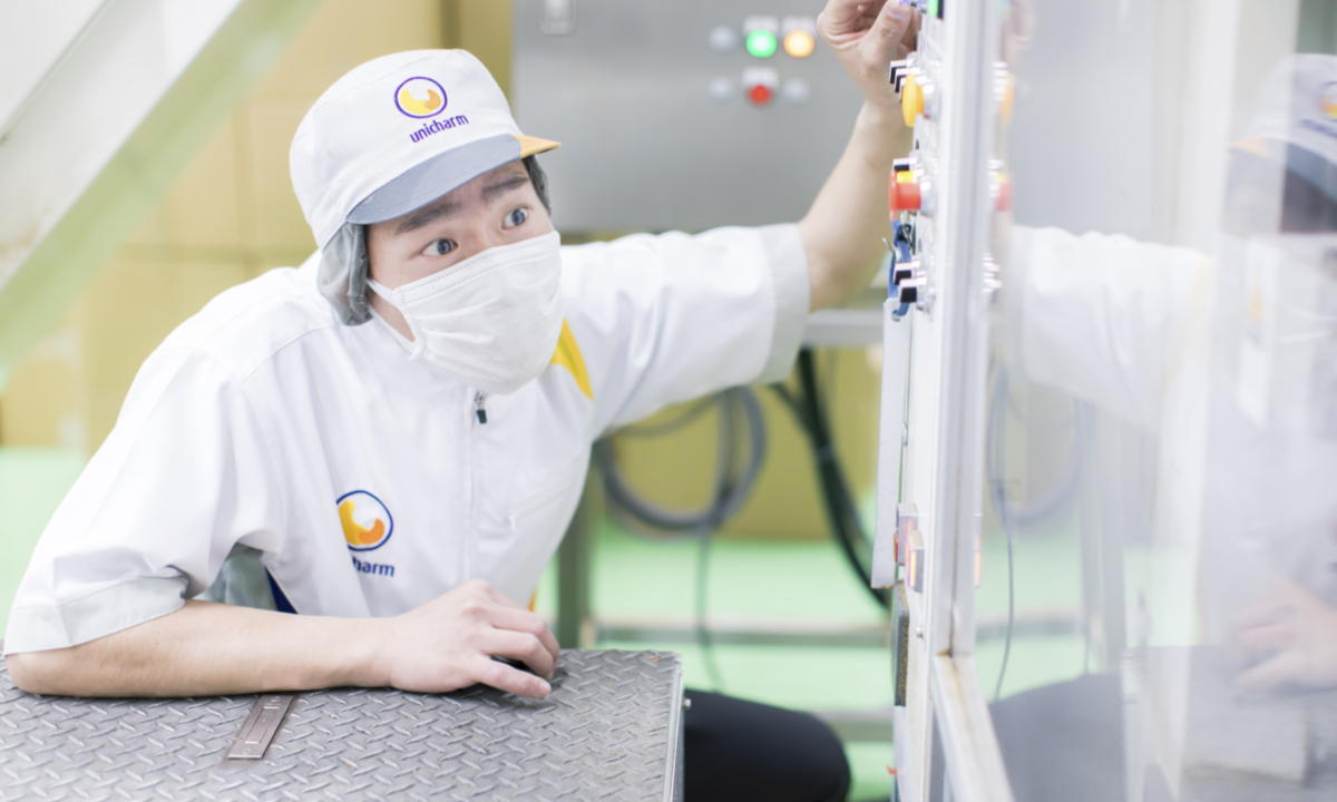 地元にユニ・チャームの工場があったので、高校生の頃からユニ・チャームへの親しみと興味を持っていました。その後大学に進み、機械システム工学を学んだこともあり、製造技術系の仕事に就きたいという思いを抱くようになりました。昔から興味のあったユニ・チャームを調べて、ユニ・チャームが組織を挙げてグローバル化を推進していることを知り、世界に向けて成長しようとしている姿勢にとても惹かれたことを覚えています。加えて、社内で商品を作るための機械を設計・改造している点が、他社にはないユニ・チャーム独自の魅力だと感じ、ここでなら自分の成長に繋げることができると入社を決意しました。