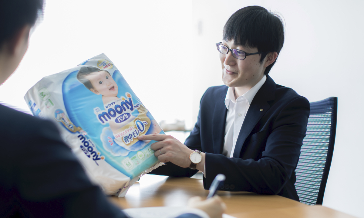 就職活動を始めるにあたり、二つの軸を設定しました。ひとつめは、大学時代に学んだ知的財産の知識を活かせる仕事という軸、もうひとつは人々の暮らしに欠かせない商品の変化や発展に貢献している企業という軸です。就職活動を進める中でユニ・チャームに出会い、先輩社員の方のお話を聞いていくと、文系の私でも知財業務に幅広く関われること、そして、ユニ・チャームがこれまで展開してきた商品が、人々の暮らしの質を向上していることについて知ることができました。私が就職先に求めていたものをユニ・チャームが備えていると分かり、この企業の一員となりたいとの思いを強く持ちました。