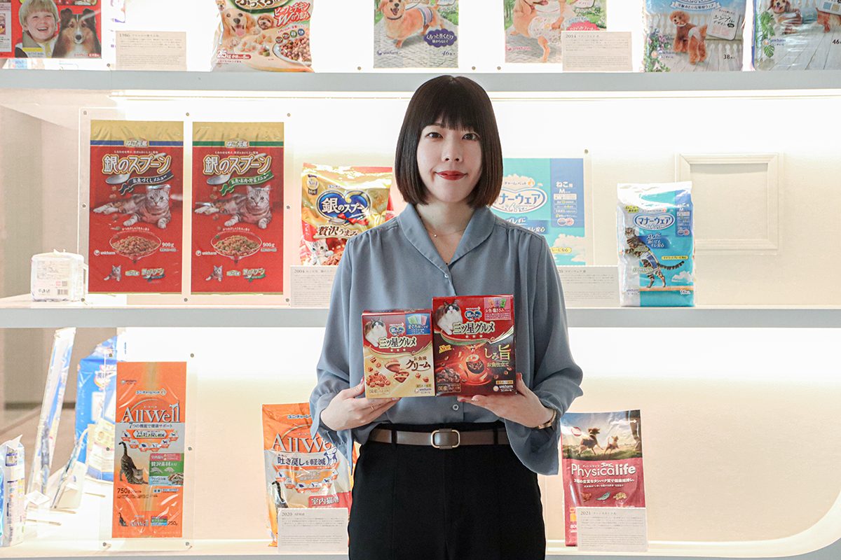 入社してみて、“食”という経験を活かした領域ができることはもちろん、多様なカテゴリーを持ち、グローバル展開をしている企業だからこその学びが多くあることも魅力だと感じています。ペットの中でもフードとトイレタリー用品では市場や生活者ニーズも全く異なりますし、生理用品や大人用おむつなど、他カテゴリーでの成功事例からも日々新たな発見と刺激を受けています。